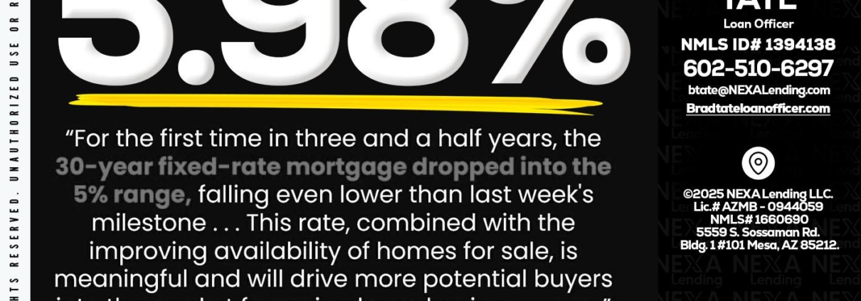 Hi, my name is Brad Tate. I’m a Loan Officer with NEXA Lending LLC., offering personalized mortgage solutions, fast customized quotes, great rates and service with integrity.