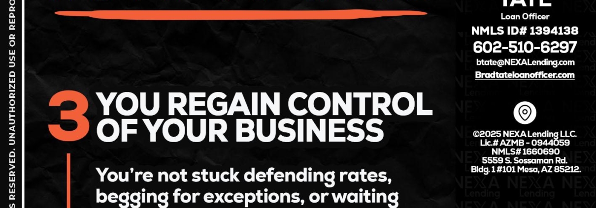 7 things (3) - Brad Tate -Loan OfficerHi, my name is Brad Tate. I’m a Loan Officer with NEXA Lending LLC., offering personalized mortgage solutions, fast customized quotes, great rates and service with integrity.