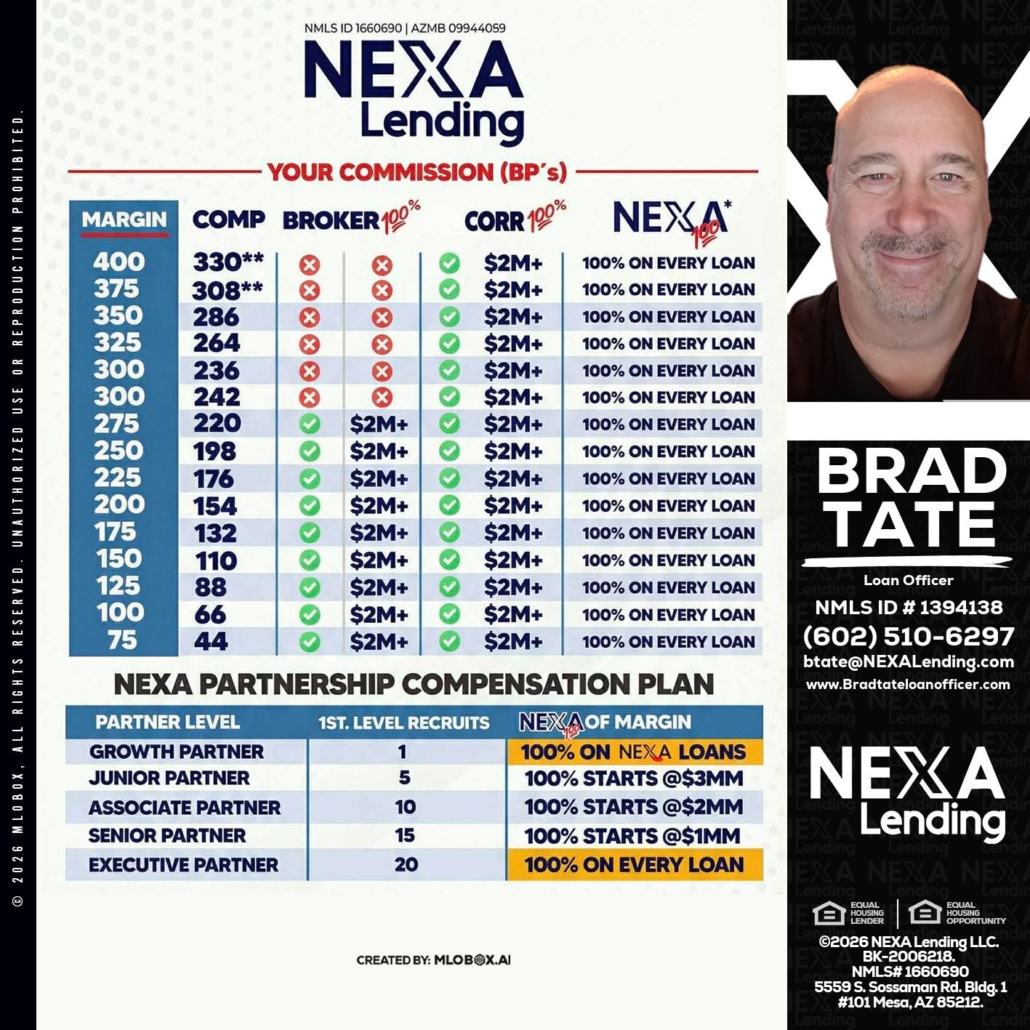 Hi, my name is Brad Tate. I’m a Loan Officer with NEXA Lending LLC., offering personalized mortgage solutions, fast customized quotes, great rates and service with integrity.