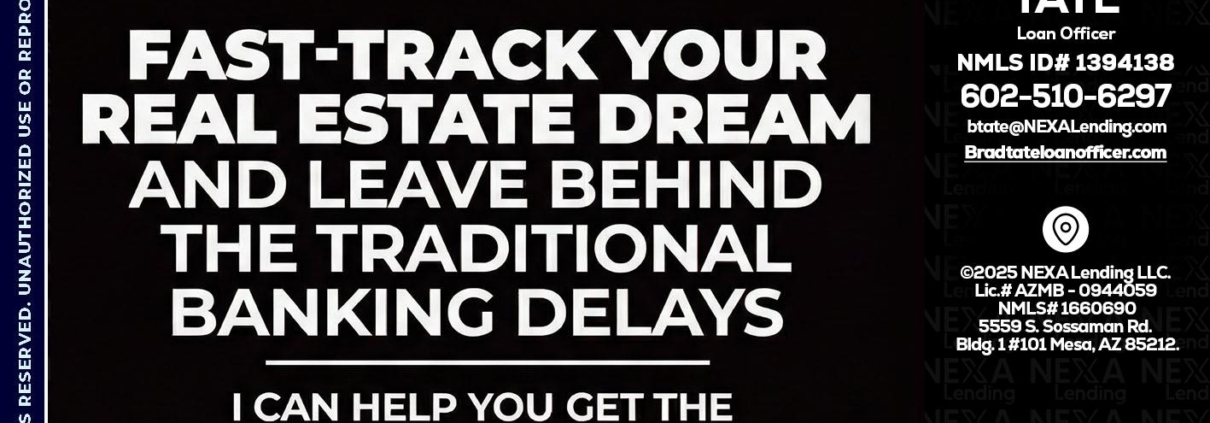 Hi, my name is Brad Tate. I’m a Loan Officer with NEXA Lending LLC., offering personalized mortgage solutions, fast customized quotes, great rates and service with integrity.