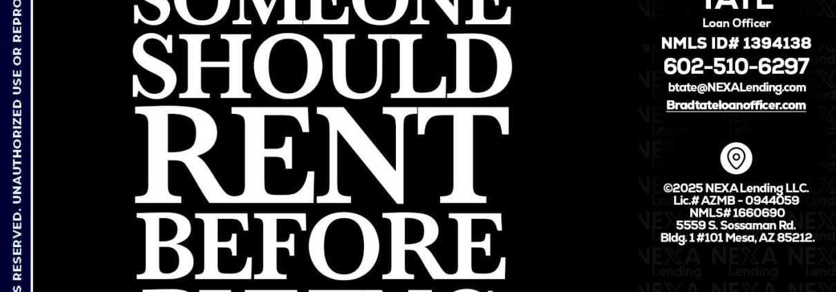 Hi, my name is Brad Tate. I’m a Loan Officer with NEXA Mortgage LLC., offering personalized mortgage solutions, fast customized quotes, great rates and service with integrity.