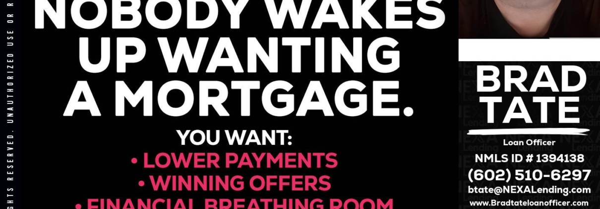 Hi, my name is Brad Tate. I’m a Loan Officer with NEXA Lending LLC., offering personalized mortgage solutions, fast customized quotes, great rates and service with integrity.