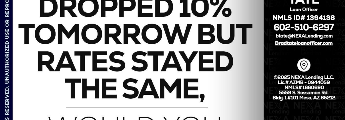Hi, my name is Brad Tate. I’m a Loan Officer with NEXA Mortgage LLC., offering personalized mortgage solutions, fast customized quotes, great rates and service with integrity.