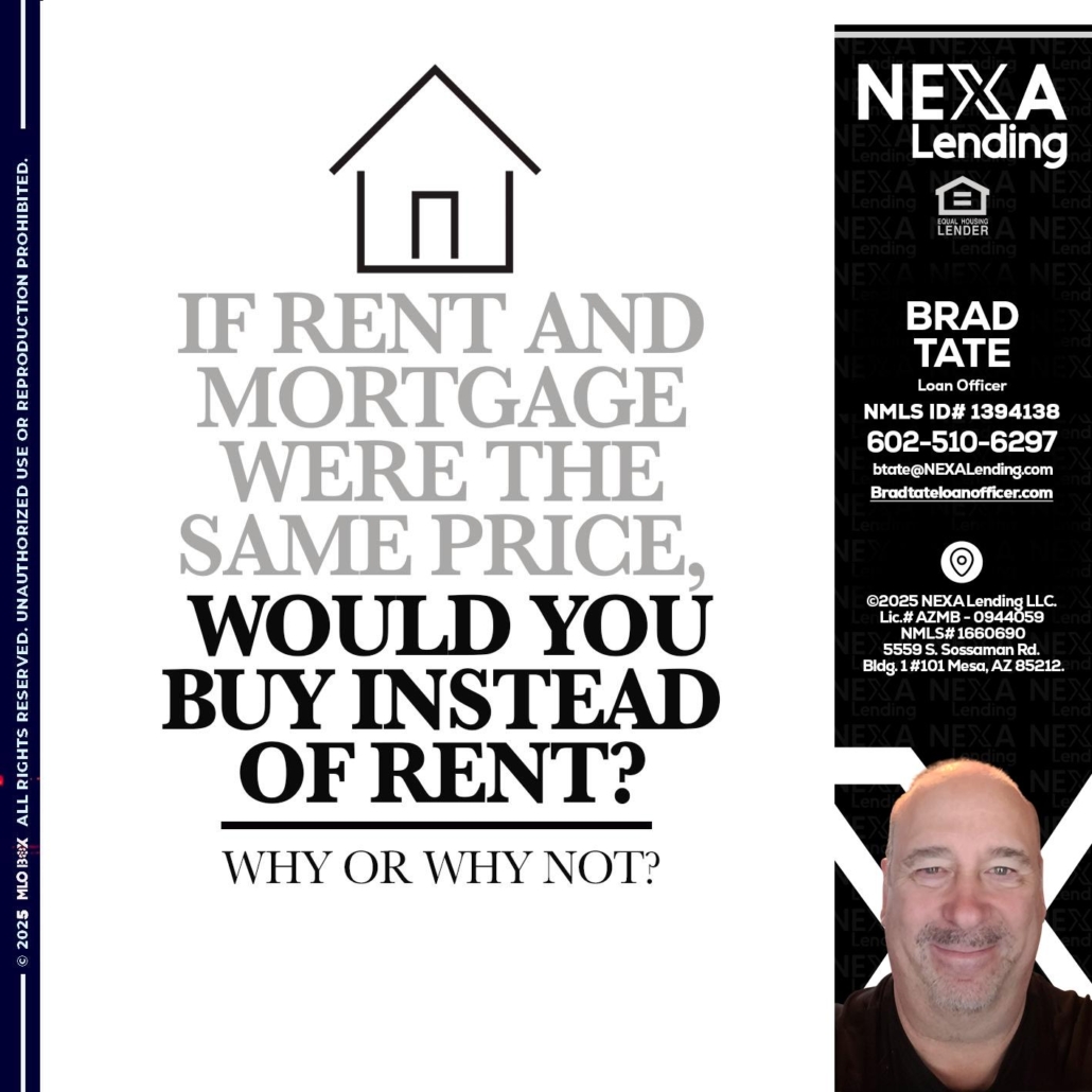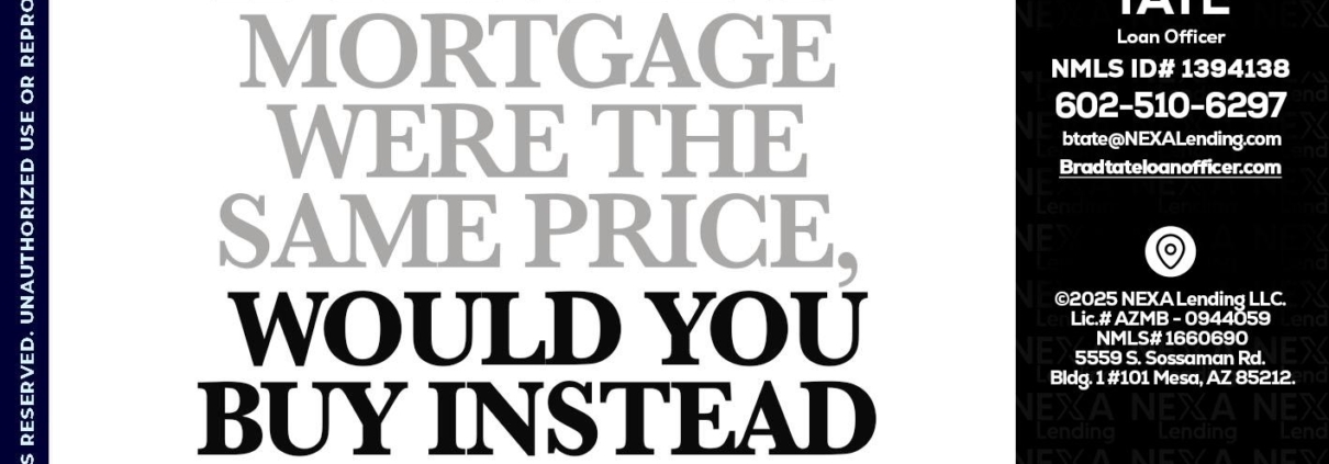 Hi, my name is Brad Tate. I’m a Loan Officer with NEXA Mortgage LLC., offering personalized mortgage solutions, fast customized quotes, great rates and service with integrity.