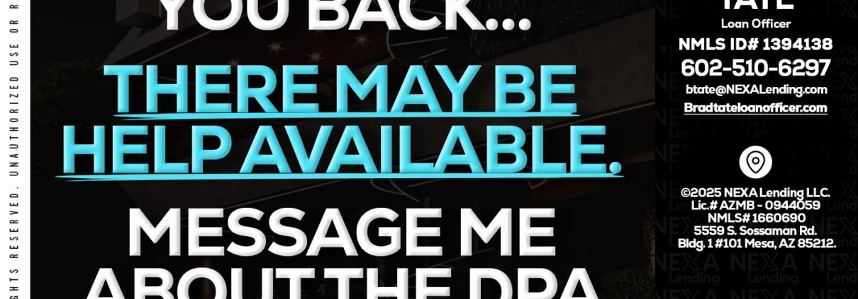 Hi, my name is Brad Tate. I’m a Loan Officer with NEXA Lending LLC., offering personalized mortgage solutions, fast customized quotes, great rates and service with integrity.