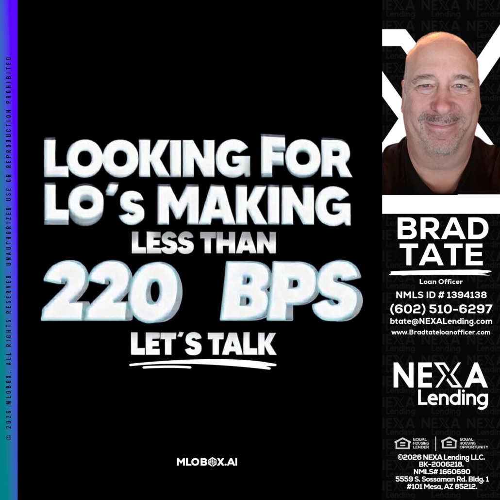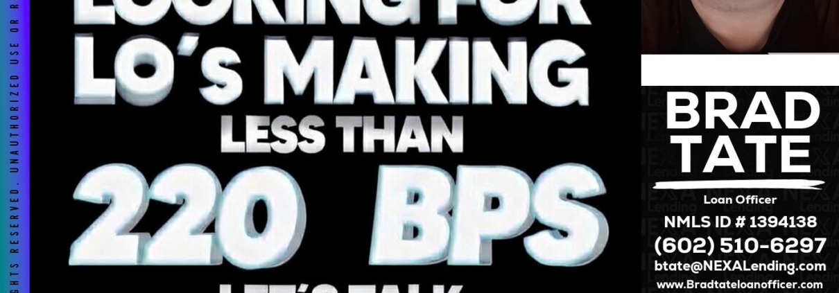 Hi, my name is Brad Tate. I’m a Loan Officer with NEXA Lending LLC., offering personalized mortgage solutions, fast customized quotes, great rates and service with integrity.