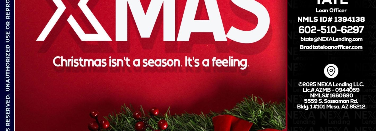 merry xmas - Brad Tate -Loan OfficerHi, my name is Brad Tate. I’m a Loan Officer with NEXA Lending LLC., offering personalized mortgage solutions, fast customized quotes, great rates and service with integrity.