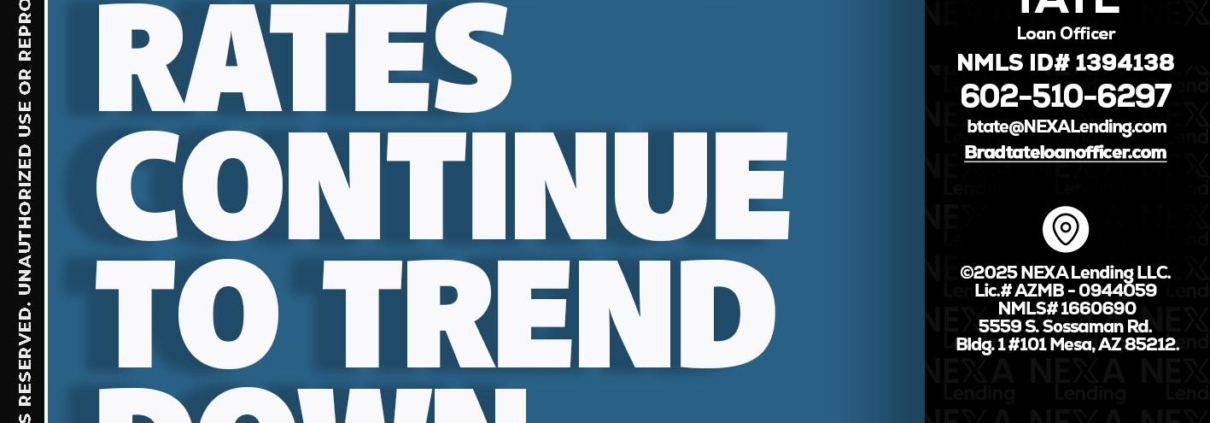 MORTGAGE RATES - Brad Tate -Loan OfficerHi, my name is Brad Tate. I’m a Loan Officer with NEXA Lending LLC., offering personalized mortgage solutions, fast customized quotes, great rates and service with integrity.