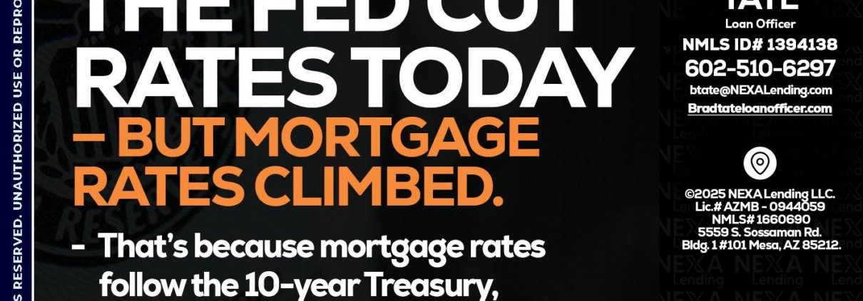 Hi, my name is Brad Tate. I’m a Loan Officer with NEXA Mortgage LLC., offering personalized mortgage solutions, fast customized quotes, great rates and service with integrity.