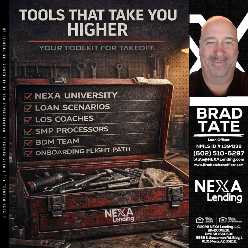 TOOLS THAT - Brad Tate -Loan OfficerHi, my name is Brad Tate. I’m a Loan Officer with NEXA Lending LLC., offering personalized mortgage solutions, fast customized quotes, great rates and service with integrity.
