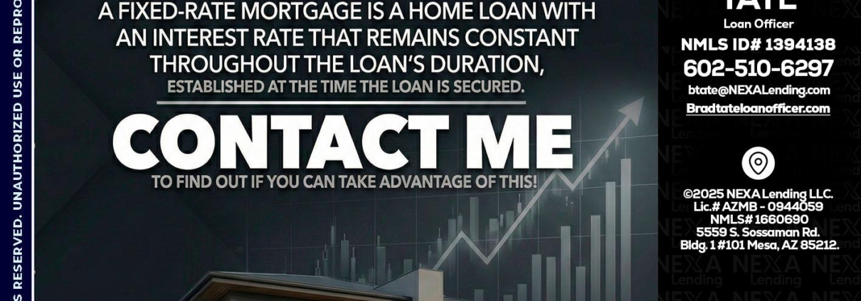 Hi, my name is Brad Tate. I’m a Loan Officer with NEXA Lending LLC., offering personalized mortgage solutions, fast customized quotes, great rates and service with integrity.